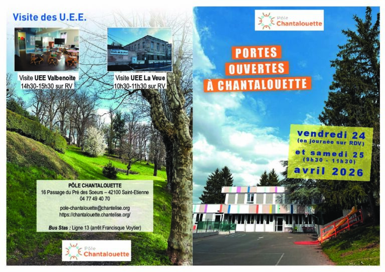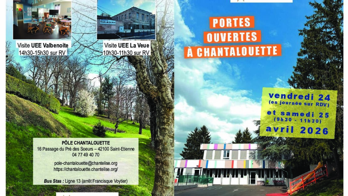 PORTES OUVERTES SAMEDI 25 AVRIL 2026 9 H 30 A 11 H 30 Portes ouvertes sur le Pôle Chantalouette Vendredi 24 avril 2026 (en journée sur rendez-vous) Samedi 25 avril 2026 de 9 h 30 à 11 h 30